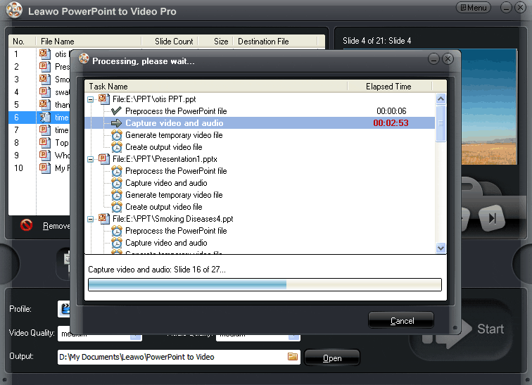For those PowerPoint files which have rich animations, transitions, music or video clips, you’d better use Leawo PowerPoint to Video Converter to convert PPT, PPS, PPTX and PPSX, etc. to Asus Transformer Prime compatible video formats in order to preserve all the effects intact in the output video. Powerful and easy-to-use, you can convert PowerPoint to Asus Transformer Prime in 3 steps: