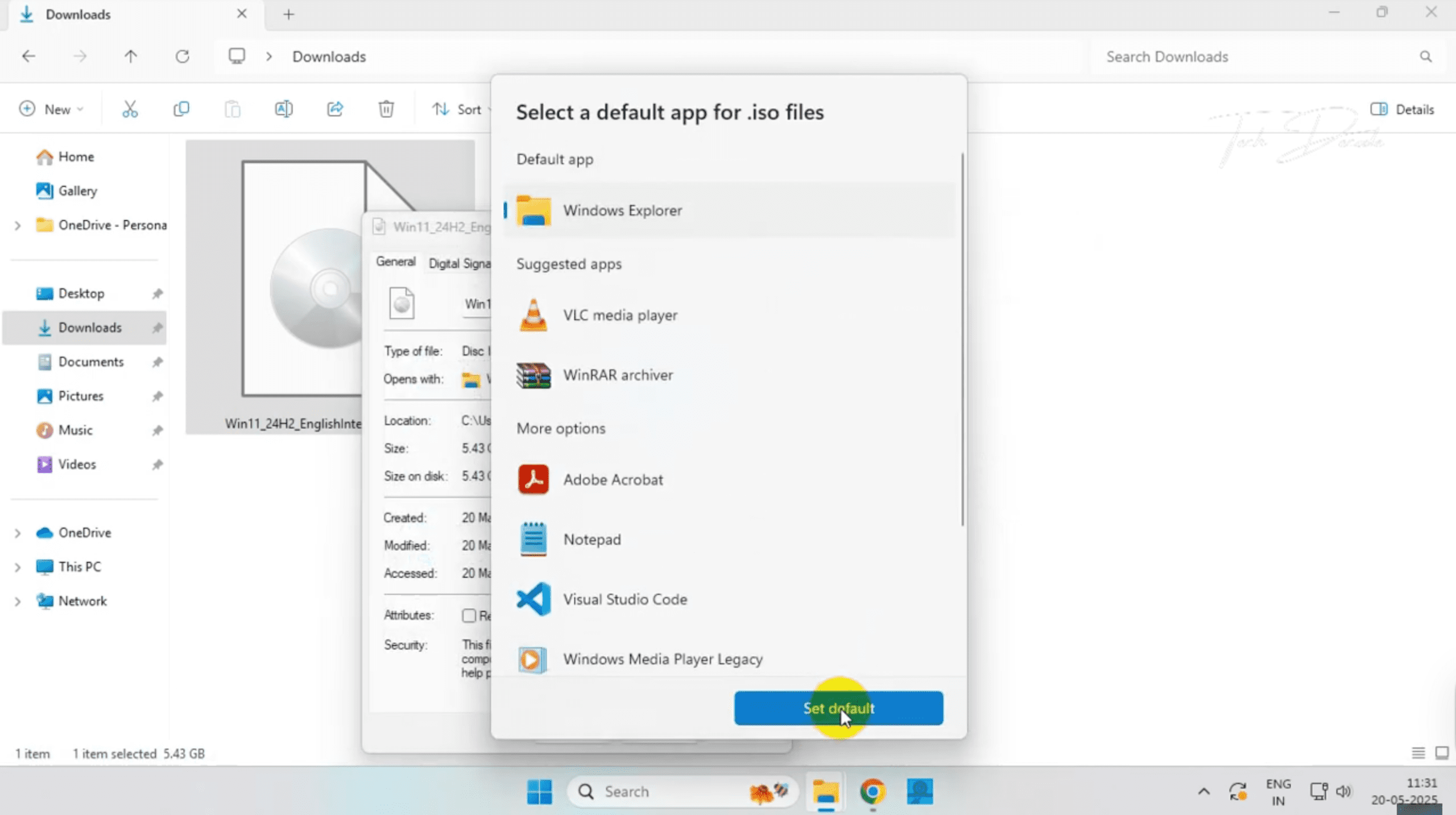 • Step 3: Select ‘Windows Explorer’ from the list and click Set Default.