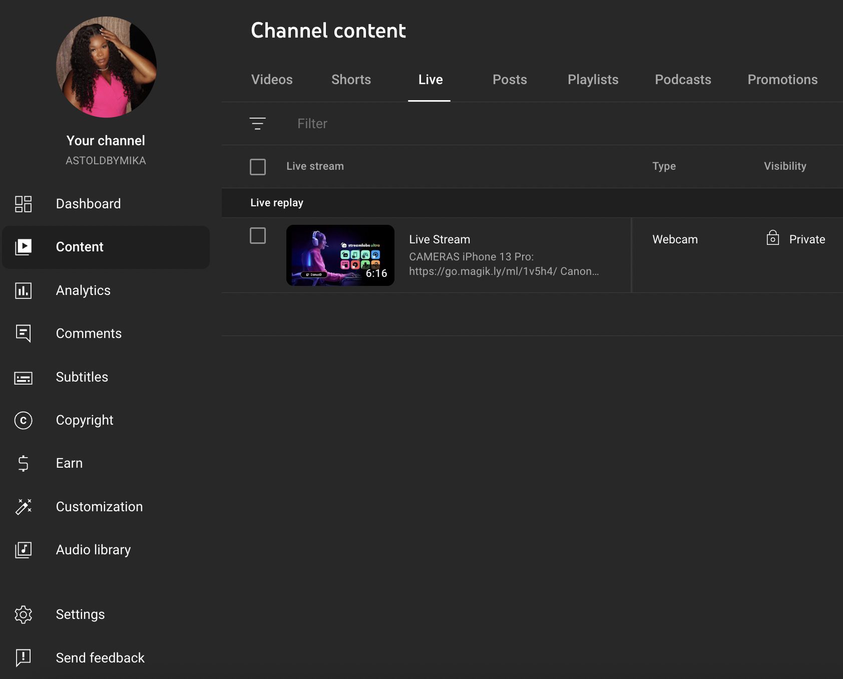 2) In the left menu of YouTube Studio, click on “Content”, and the pop-up page will display all the videos and live content that you have uploaded.