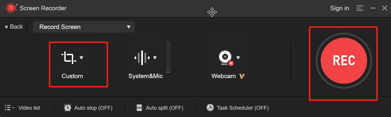 Step 4: Select the area that needs to be recorded, and then click “REC”.