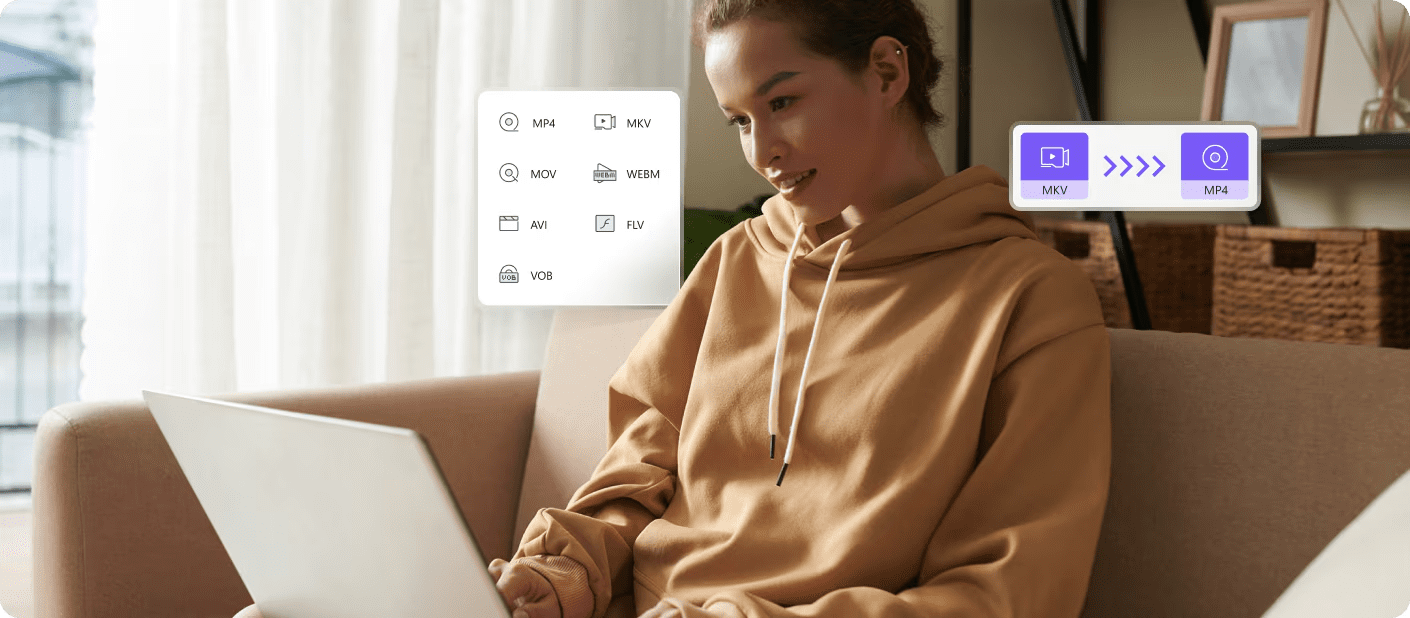 • Convert videos to MP4, MKV, MP3 or other formats.