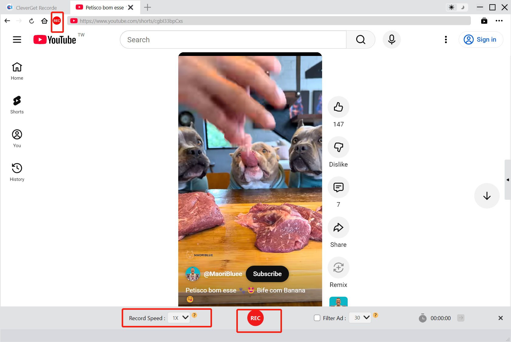 Step 4: Click on the “REC” button in the upper left corner to adjust the recording speed, then, click the middle button at the bottom to start the recording.
